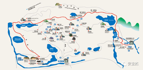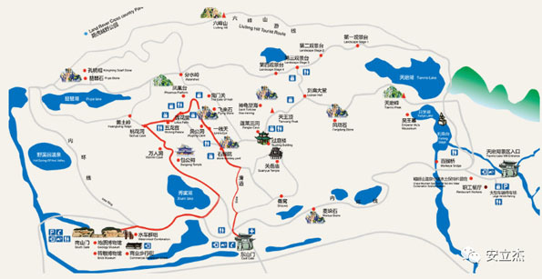 全程五公里的路程湖光山色,路过风水岭、碧波潭走过大幕崖、万佛岭,一路上跟着导游认石头,发挥了无尽的想象力。最后的天磨湖果然不枉我们这三小时的步程,北山门前的紫色花海更是拍照圣地。