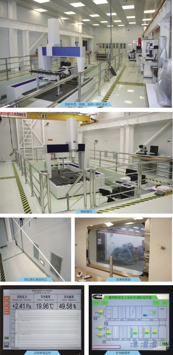 3、净化精密空调:包含组合式空调机组,特制送风吊顶层,微孔板送回风口。