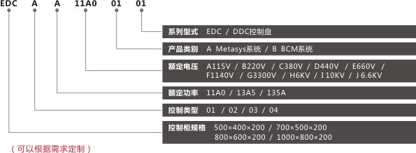 软启动(控制)柜 软启动(控制)柜的型号由系列型式、接线方式、产品类别、额定电压、额定电流及特殊设计流水码等代码组成,具体标识方法见图。