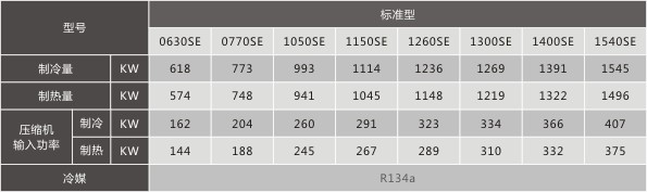 注:▶ 标准运行工况: 制冷: 冷冻水进/出水温度12℃/7℃,室外气