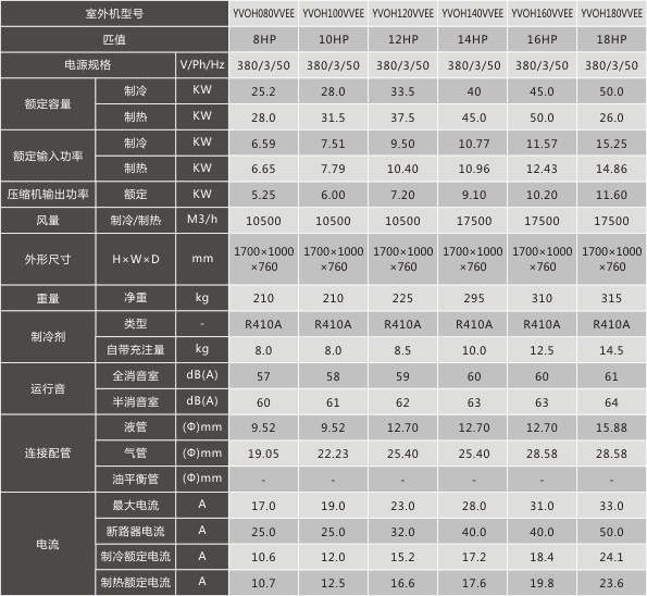 注:室外机组可由以上模块进行任意组合而成(单个系统最多不超过三个模块)